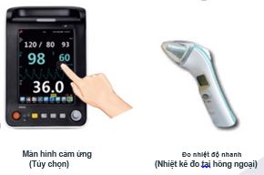 | SpO2+NIBP+ECG+TEMP, Pin Li-ion | Masimo/Nellcor SpO2, EtCO2, Đo nhiệt độ nhanh, Máy quét mã vạch, thiết bị ghi nhiệt |