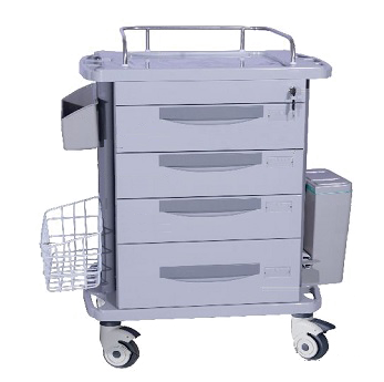 Xe đẩy cấp phát thuốc kết cấu chủ yếu làm bằng nhựa, nhôm và thép. Tấm ABS ở trên, dễ dàng vệ sinh. Khung xe thiết kế trên 4 trụ