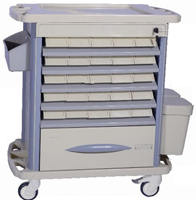 Xe đẩy cấp phát thuốc kết cấu chủ yếu làm bằng nhựa, nhôm và thép. Tấm ABS ở trên, dễ dàng vệ sinh. Khung xe thiết kế trên 4 trụ