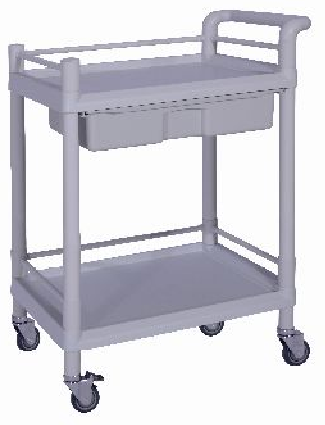Loại xe hai tầng bằng nhựa ABS và PP Các tầng làm bằng nhựa, có hộc kéo Xe 4 bánh xe loại êm không gây ồn, 2 bánh có khóa Xe có thiết kế khung tay nắm để đẩy