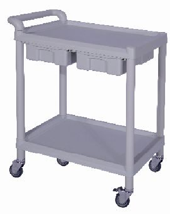 Loại xe hai tầng bằng nhựa ABS và PP Các tầng làm bằng nhựa, có hai hộc kéo đơn Xe 4 bánh xe loại êm không gây ồn, 2 bánh có khóa