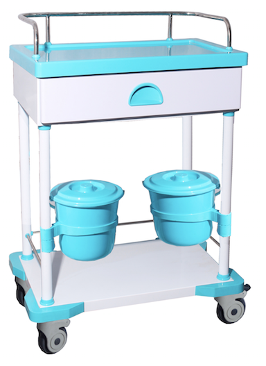 Xe đẩy khám bệnh kết cấu chủ yếu làm bằng nhựa, nhôm và thép. Tấm ABS ở trên dễ dàng vệ sinh. Khung xe thiết kế trên 4 trụ