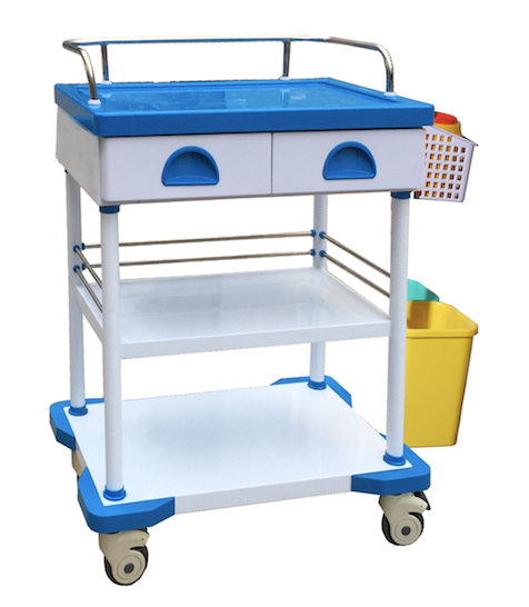 Xe đẩy khám bệnh kết cấu chủ yếu làm bằng nhựa, nhôm và thép. Tấm ABS ở trên dễ dàng vệ sinh. Khung xe thiết kế trên 4 trụ