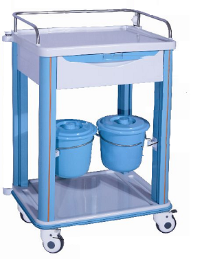 Xe đẩy khám bệnh có kết cấu chủ yếu làm bằng nhựa, nhôm và thép. Tấm ABS ở trên dễ dàng vệ sinh.