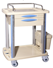 Xe đẩy khám bệnh có kết cấu chủ yếu làm bằng nhựa, nhôm và thép. Tấm ABS ở trên dễ dàng vệ sinh. Khung xe thiết kế trên 4 trụ
